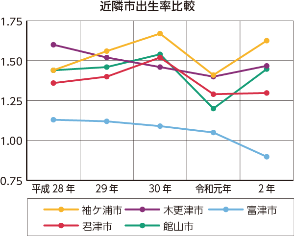 かずさ4市の中で水をあけられた感のある出生率を向上させます